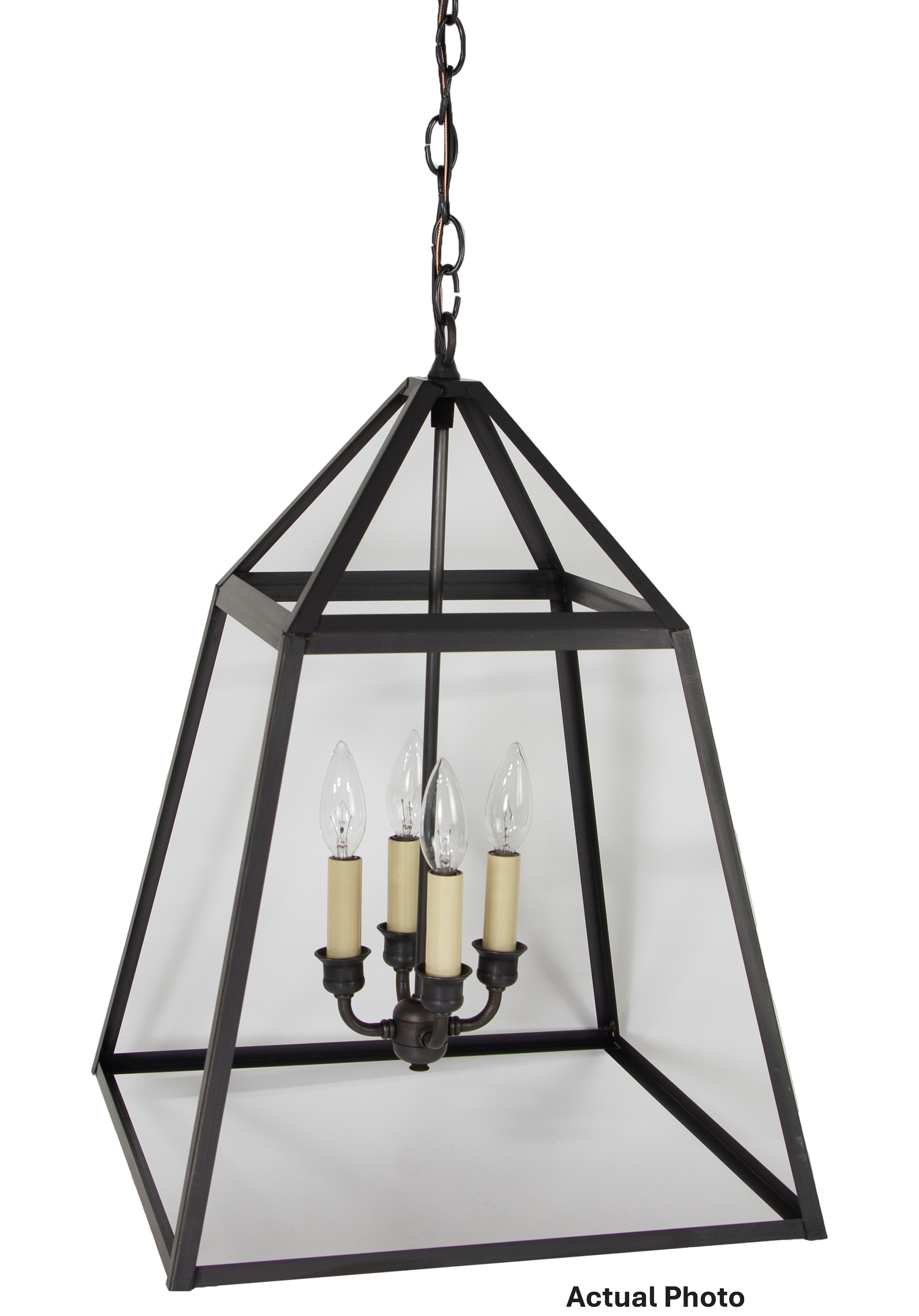 Bulb type: A 904 Chandelier Hanging inside with Four 60-Watt Candelabra Base (pictured) or Four 60-Watt Candelabra Base Bulbs